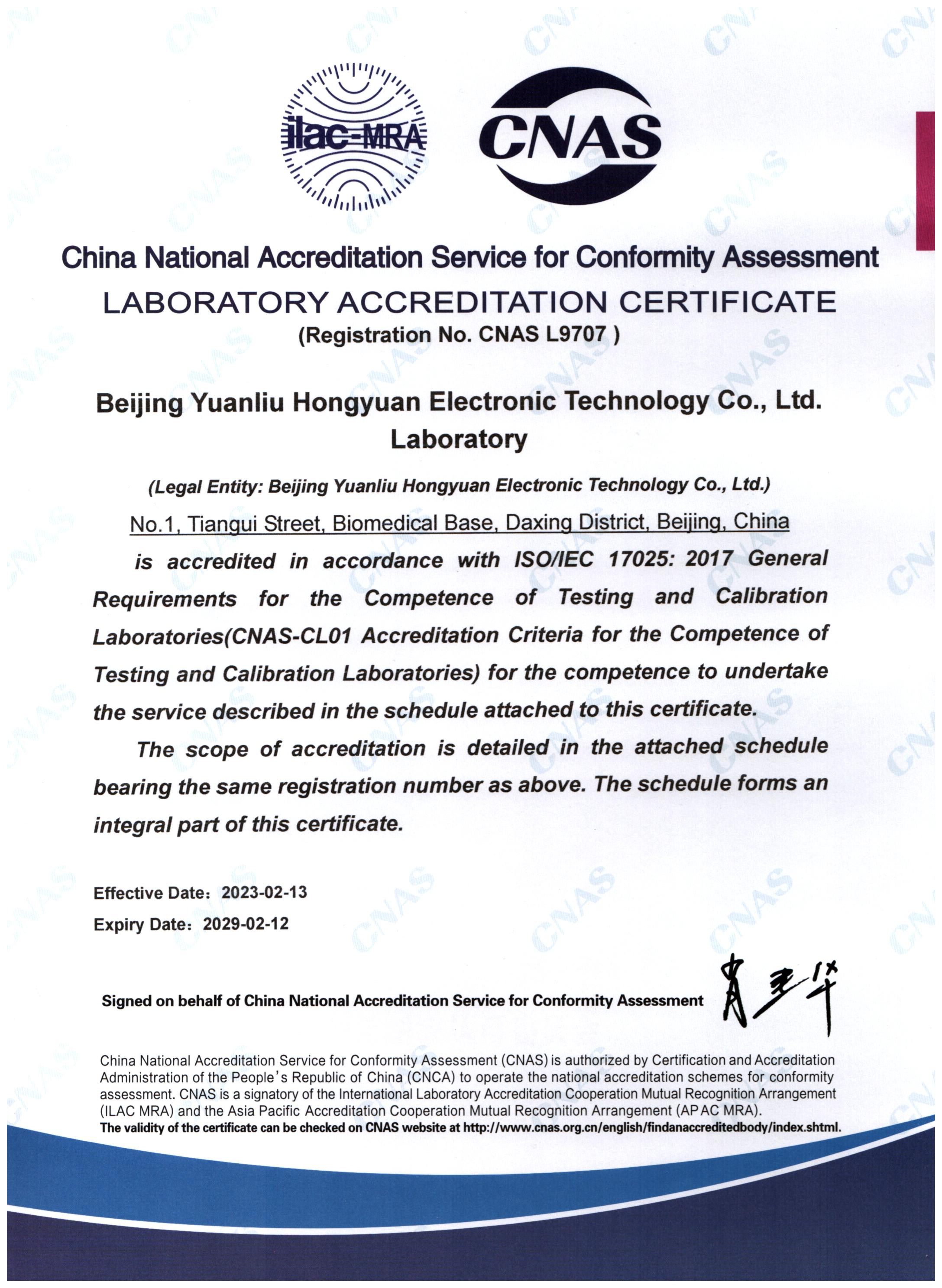 CNAS实验室认可证书(英文版)